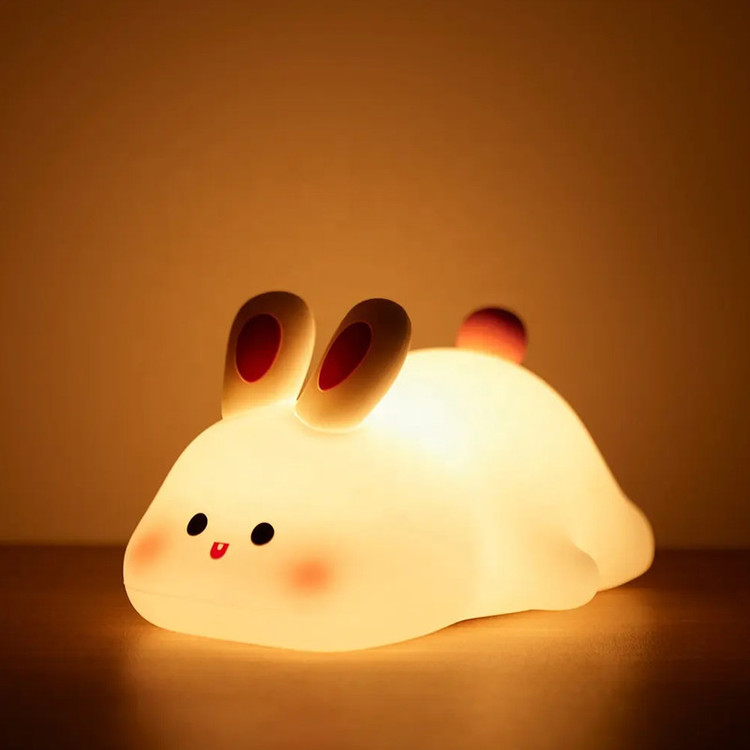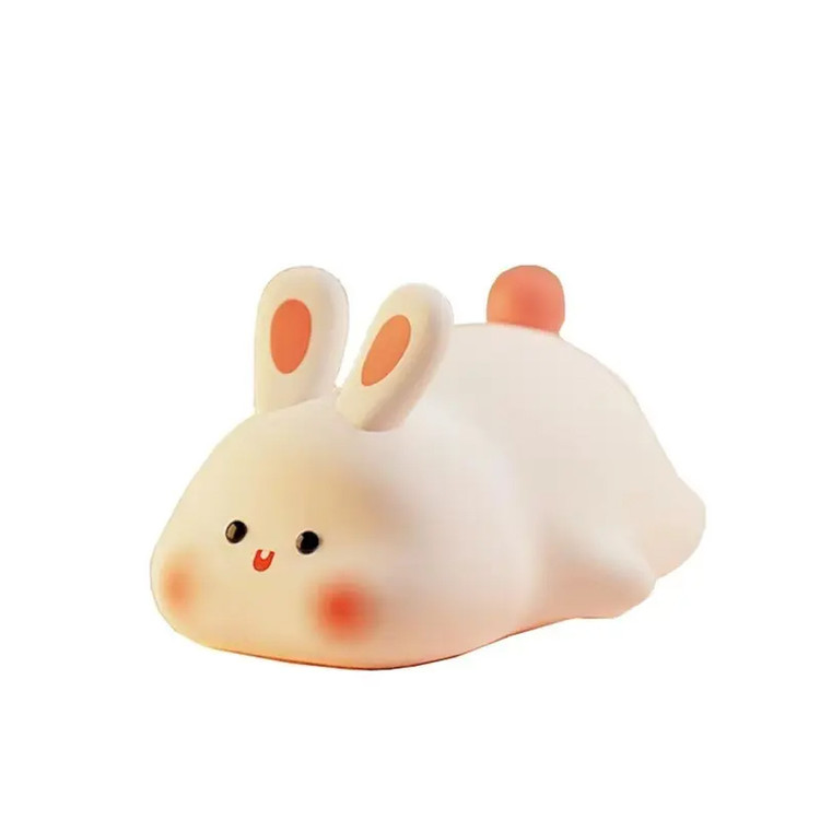 جنس این چراغ خواب سیلیکونی بوده . این چراغ خواب با طراحی جذابی به شکل خرگوش دارای حالت نوری شب خواب است.این چراغ یک ویژگی جذاب دارد که می توانید با ضربه زدن به سطح سیلیکونی چراغ آن را روشن و خاموش کنید. این چراغ قابلیت شارژ مجدد را داراست و از طریق کابل Type-C (تایپ سی) موجود در جعبه می توانید آن را شارژ نمایید.