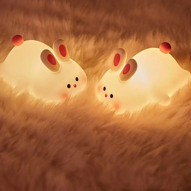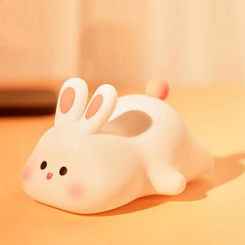 جنس این چراغ خواب سیلیکونی بوده . این چراغ خواب با طراحی جذابی به شکل خرگوش دارای حالت نوری شب خواب است.این چراغ یک ویژگی جذاب دارد که می توانید با ضربه زدن به سطح سیلیکونی چراغ آن را روشن و خاموش کنید. این چراغ قابلیت شارژ مجدد را داراست و از طریق کابل Type-C (تایپ سی) موجود در جعبه می توانید آن را شارژ نمایید.