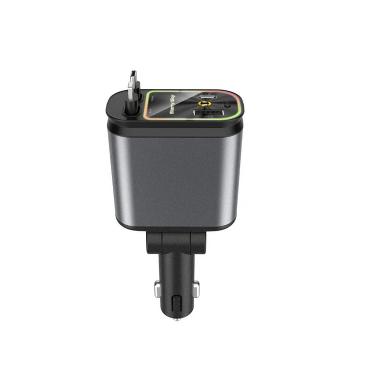 کابلهای Retractable: دارای کابل Type-C و Lightning که بهصورت جمعشونده طراحی شدهاند، تا فضای داخل خودرو مرتب باقی بماند .