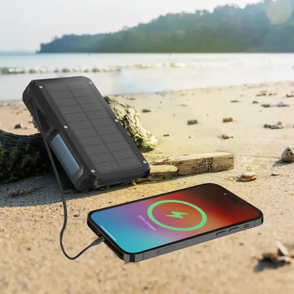 پنل خورشیدی این پاوربانک برای شارژ اضطراری طراحی شده و برای شارژ کامل نیاز به نور خورشید مستقیم و زمان طولانی دارد.