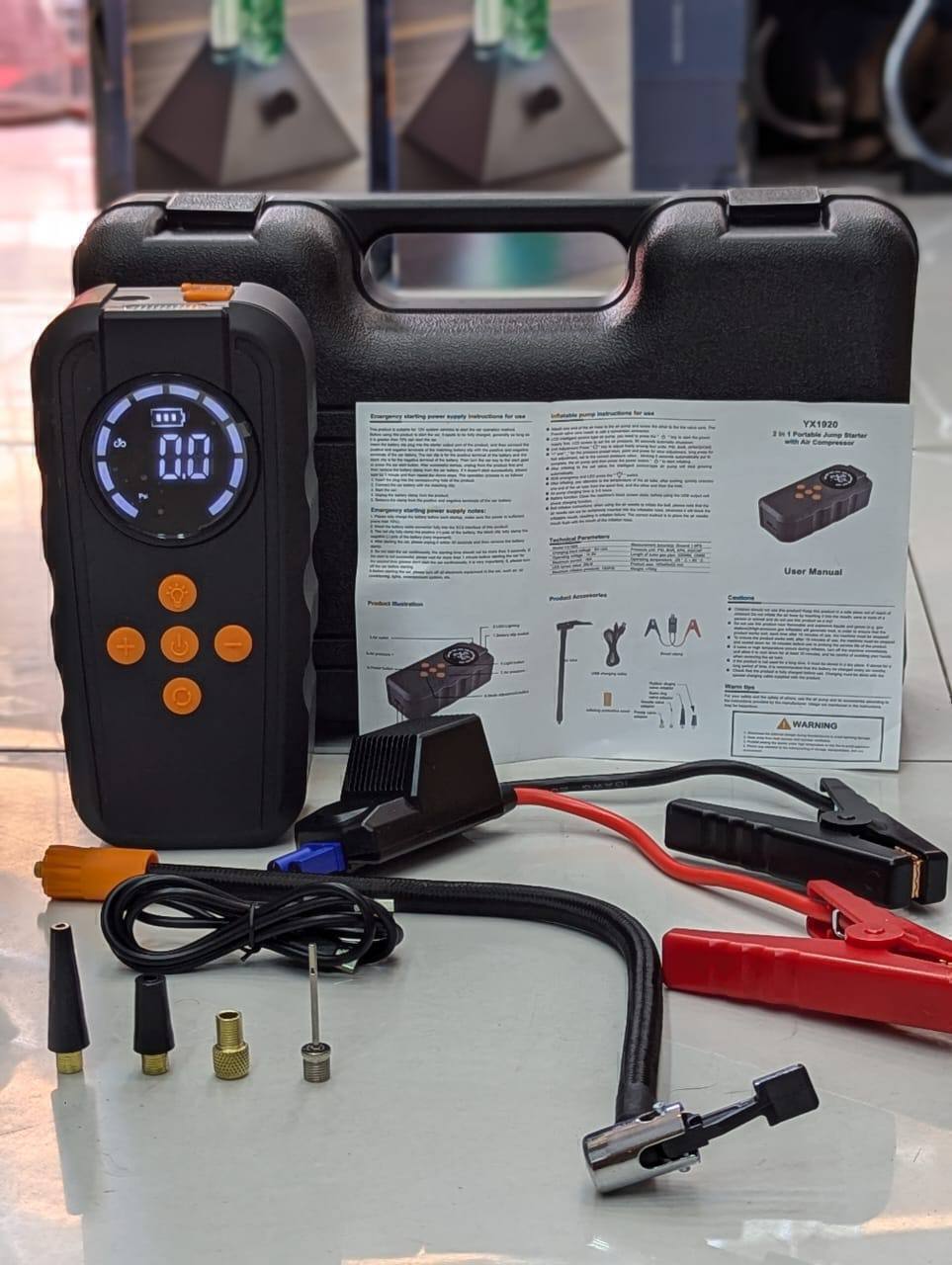 جامپ استارتر و پمپ باد چهارکاره مدل YX1920 | نجاتدهنده همیشههمراه خودرو