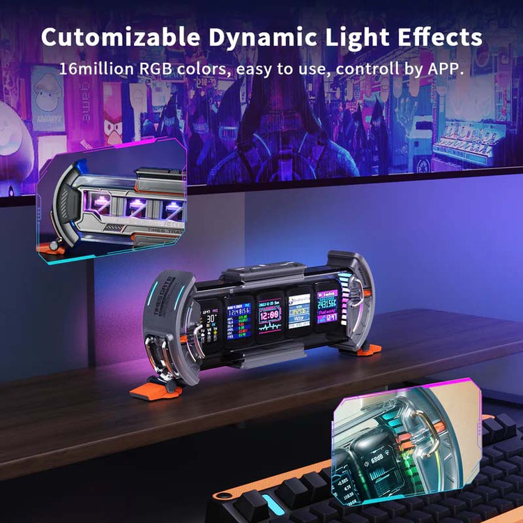 ساعت و نمایشگر Divoom مدل Times Gate با طراحی بسیار زیبا و امکانات فراوان، میتواند به جذابتر شدن میز گیمینگ شما کمک کند. این نمایشگر دیووم شامل 5 نمایشگر رنگی LCD است که با نصب اپلیکیشن Divoom و اتصال گوشی به آن، میتوانید از طرحهای مختلف برای نمایش استفاده کنید. همچنین، میتوانید با استفاده از پیکسلها، نقاشیها و طرحهای جذاب خود را ساخته و روی صفحهنمایش نمایش دهید.