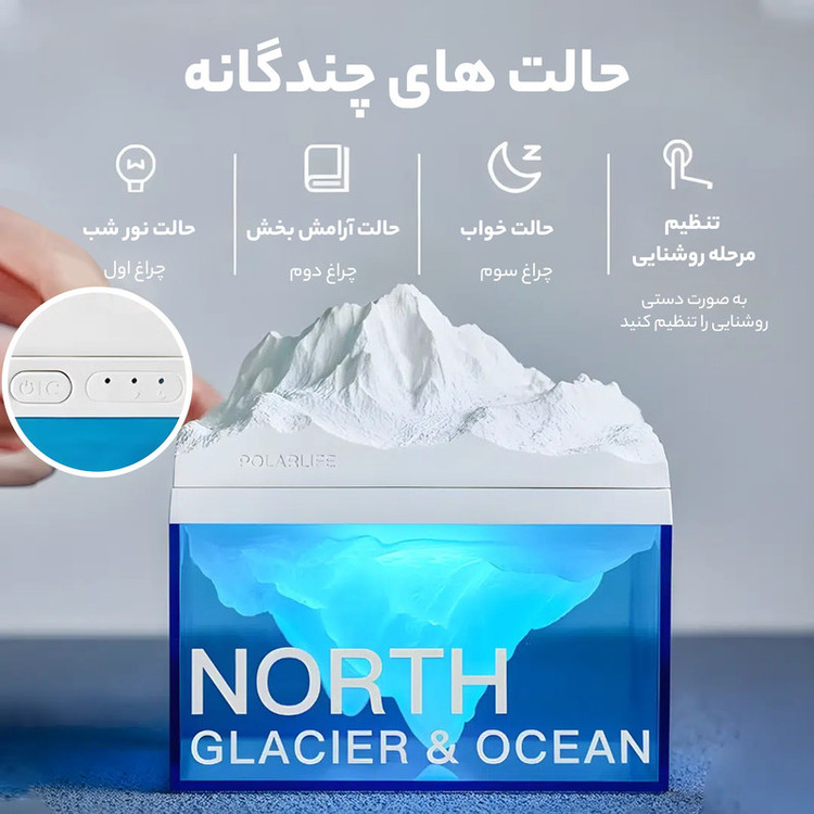 چراغ خواب دکوری کوه یخ Polar Glacier یک ترکیب منحصر به فرد از زیبایی و کارایی است که به اتاق خواب شما جلوهای خاص و جذاب میبخشد. این چراغ خواب نه تنها به عنوان یک منبع نور ملایم برای شبهای آرام شما عمل میکند، بلکه به خاطر طراحی خلاقانهاش شبیه به کوه یخ، به عنوان یک دکوری زیبا نیز مورد استفاده قرار میگیرد. با نورپردازی نرم و رنگارنگ، این چراغ خواب فضایی دلنشین و آرامشبخش ایجاد میکند که میتوانید به راحتی در آن استراحت کنید یا به خواب بروید.